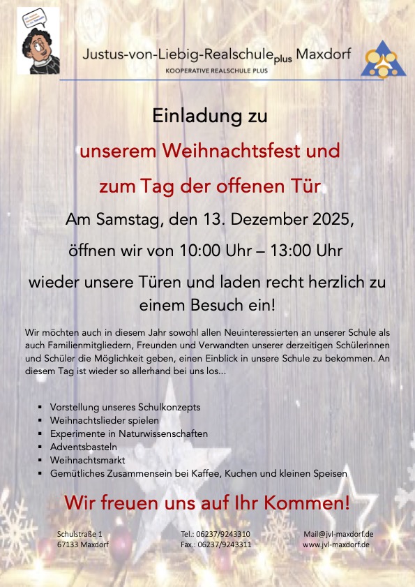 Liebe Besucherinnen und Besucher, wir dürfen Sie und Euch ganz herzlich auf der Homepage der Kooperativen Realschule plus Maxdorf willkommen heißen. Über die verschiedenen Menüpunkte im Icon oben kann man uns virtuell kennenlernen, denn auf den einzelnen Seiten präsentieren wir unsere Schule, das Konzept und stellen die Menschen vor, die unsere Schulgemeinschaft ausmachen. Wir freuen uns, dass Sie da sind/ ihr da seid und wünschen Ihnen und euch viel Spaß