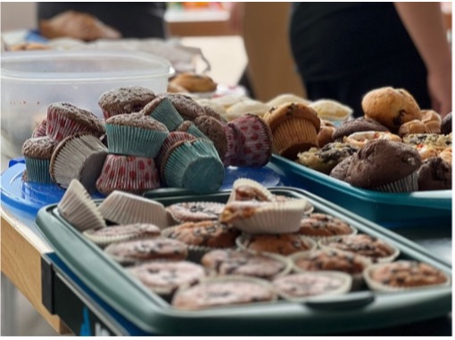 Im Vorfeld waren fleißig leckere Muffins, Cookies und Kuchen gebacken worden, um die Fußballerinnen und Fußballer sowie Zuschauerinnen und Zuschauer zu verköstigen. Auch viele Lehrerinnen und Lehrer nutzten das Angebot.
